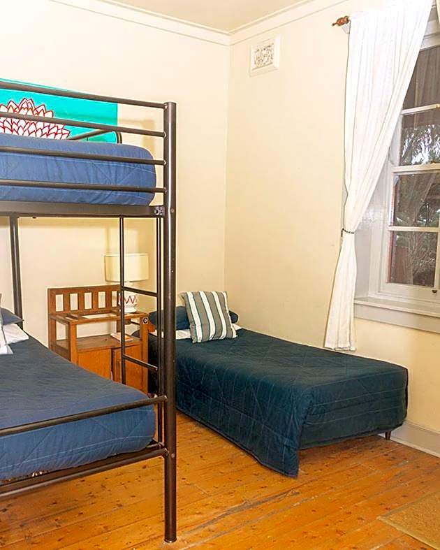 This room has 2 bunk beds. There is a sink in the room. Linen and towels are provided.